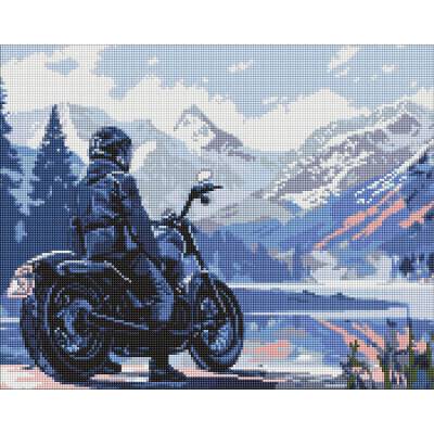 Алмазна мозаїка "Мотоцикліст у горах" Ідейка AMO8037, 40х50 см
