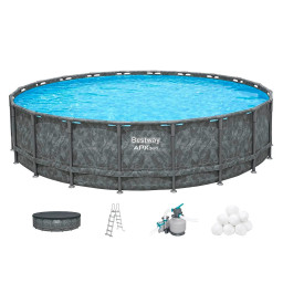 Каркасний басейн APX 365 пропонує великий простір для розваг всієї родини. Стійкі до розриву та УФ-випромінювання бічні стінки з матеріалу TriTech надійно витримують навантаження, викликані вагою і рухом. Облицювання басейну з всесезонним захистом Polar-Shield надає басейну зимостійкі властивості. Корозійностійка рама із сталі з антипригарним покриттям. Система ClickConnect зводить до мінімуму ризик пошкоджень, викликаних контактом з металом, і вражає нескладною системою вставних з'єднань та підвищеною міцністю. Для складання каркасу та покриття басейну потрібно 2-3 особи. Зовнішні стіни під темний мармур, внутрішнє облицювання під синій мармур.