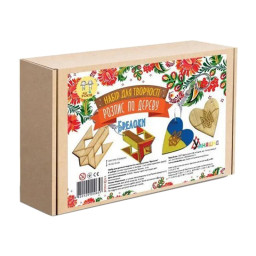 У наборі: 2 основи для розпису з фанери з нанесеними контурами, набір акрилових фарб з 6 кольорів, пензлик, магніт.