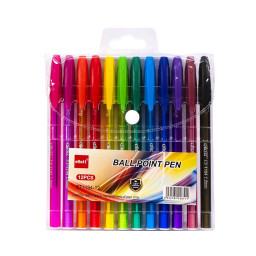 Набір кулькових ручок на масляній основі, тонований тригранний корпус, товщина лінії 1 мм, 12 кольорів .
