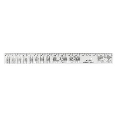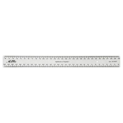 Изготовлена из гибкого, прочного, первичного снежно-белого пластика со шкалой до 30 см включительно. Дополнительно нанесена шкала закройщика, что удобно для построения выкроек и работы с тканями.
